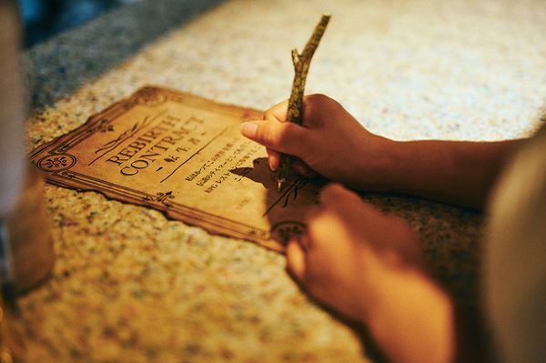 イベント会場は参加者にしか通知されない都内某所にある地下のレストラン。レストランに入るために受付で怪しげな合言葉を伝えたり、職業へ転生するための書類にサインを書いたり、レストランへと続く秘密の扉を探したりと実に手が込んでいて謎めいている。少しずつ非現実の世界へ導かれていくようでワクワクする。ゲームファンのみならず、ミステリーやアトラクション好きもたまらないだろう。