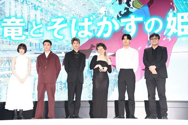 現在、劇場では佐藤の声も登場する予告編が上映されており「自分で聞けば、どう聞いても『おれじゃん』ってなるので、バレないかヒヤヒヤしていました(笑)」と情報解禁に安どの表情。“竜”は「仮想空間でみんなから怖がられている存在」だといい、「複雑な心を持った難しい役どころですし、『現実世界では何者なのか?』も謎の要素なので、そこにも注目してもらえれば」とアピールした。