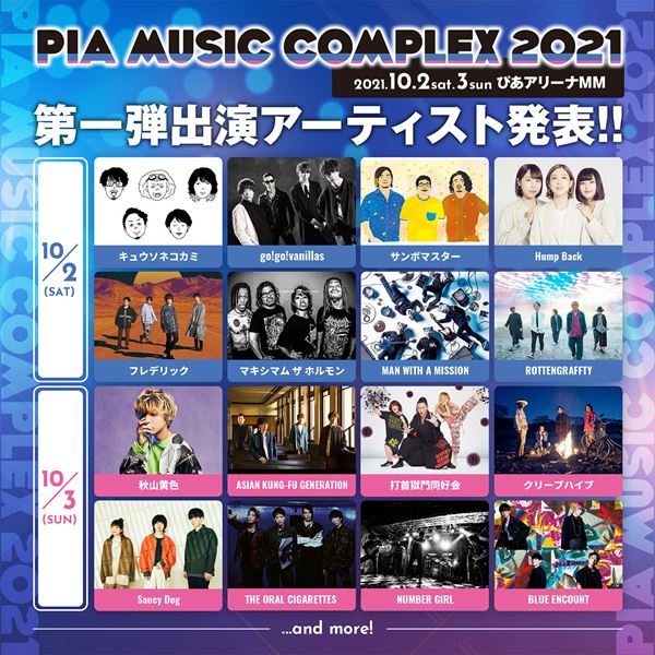 『PIA MUSIC COMPLEX 2021』開催決定 第1弾発表でホルモン、マンウィズ、アジカン、ナンバガら