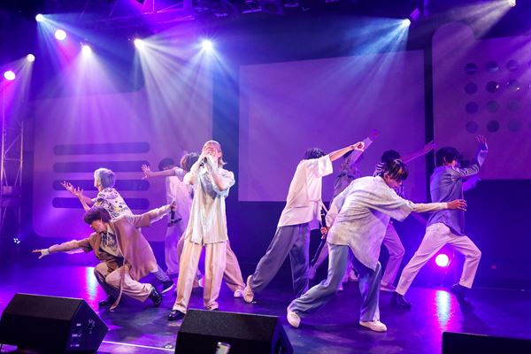 今回のライブでは配信も行われており、早速、オンラインで参戦していたファンからも新曲や衣装への感想が。「めちゃくちゃカッコイイ!」「衣装ステキ!」というメッセージにメンバーの表情を和ませた。MORRIEが自分に対するコメントしか拾わないことにFUMINORIがツッコむ……とおなじみの光景でファンを笑わせつつ、2曲目へ。初のDigital Single『CLICK ME』ではキレのあるダンスを見せながら、「僕だけを見て 目を逸らさないで」という歌詞を感じさせるように、会場にいるファンひとりひとりと目を合わせている姿が印象的だった。立て続けに夏にぴったりの新曲『Under The Sea』を披露し、会場のボルテージを上げていく。