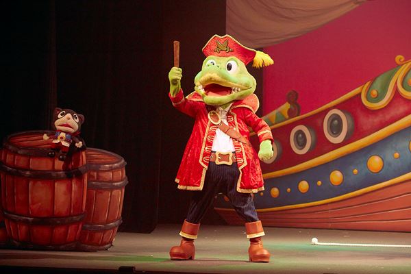 『すすめ!たからのしまの だいぼうけん』は、しまじろうたちが宝の島を大冒険する物語。みみりん、はなちゃん、にゃっきい、とりっぴい、ガオガオさんらお馴染みの仲間と一緒に、海を渡り、宝探しの旅に出る。今作には、新キャラクターとしてワニ船長とニャン吉が登場、宝をねらう存在だが憎めない存在として演目を盛り上げる。