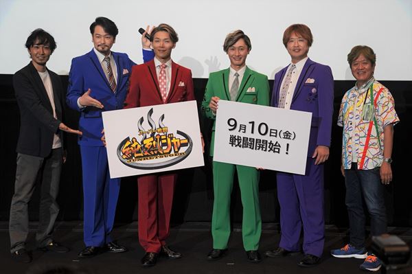 純烈、佛田洋監督が『スーパー戦闘 純烈ジャー』完成披露舞台挨拶に登場 「いろんなものが詰まった幕内弁当のような映画」
