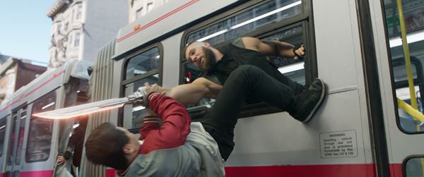 走り続ける狭いバスの中で始まった、シャン・チーVS父の刺客たちとの白熱のバトルにおいて渾身の拳を放ち、敵をぶっ飛ばしたシャン・チーは、その後も驚異的な武術を駆使しながら瞬きもできない速さで敵を一蹴。ホテルマンとして平凡な日々を送りその“力”を封印していたショーンが、ヒーロー・シャン・チーとしての力を発揮した。