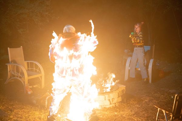 公開された予告編でも『アナベル 死霊人形の誕生』(17年)の子役ルル・ウィルソン演じるベッキーのバイオレンスぶりが炸裂。父親を拷問され怒り狂うベッキーは、動物をあしらったニット帽を目深に被って臨戦態勢に入ると、キラキラなラメがキュートな色鉛筆や古びた桟橋の板、天糸など身の回りのものを使い、森中にトラップを張り巡らせていく。