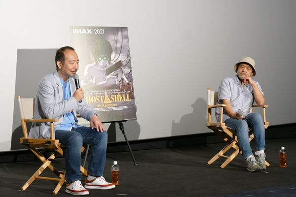 「それと変なアフレコしたよね」と話題を切り出すと、若林氏は「(主人公の草薙)素子の声に響きが欲しいということになり、45リットルの水色のポリバケツを用意して、声優の田中敦子さんに頭を突っ込んでもらった。でも全然ダメで」と驚きのエピソードも飛び出した。IMAX版は日本を除く全世界200スクリーン以上で上映されており、IMAX上映作品としては、日本映画歴代第3位の拡大ロードショーが実現。押井監督は「こうやってスクリーンで見てもらえるのは、監督としては幸せなこと」と喜びの声をあげていた。