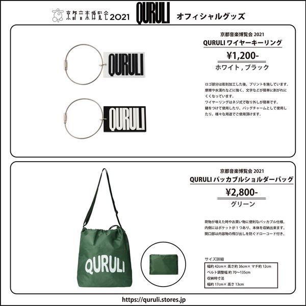 また、今回の発表に合わせて京都音博の新グッズの販売がスタート。新たにワイヤーキーリング(ホワイト・ブラック)、パッカブルショルダーバッグ(グリーン)の2種類がグッズに加わった。