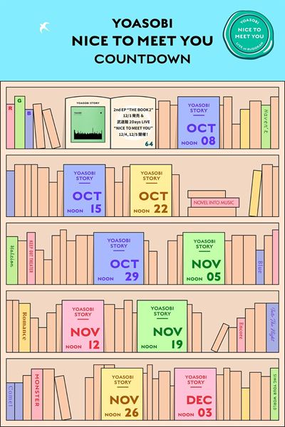 また本日より日本武道館公演までの2カ月に渡り全10回、毎週金曜日12時に新情報を発表するカウントダウン企画がスタートし、合わせて“小説を音楽にするユニット”ならではの本棚をモチーフにしたカウントダウン画像が公開された。