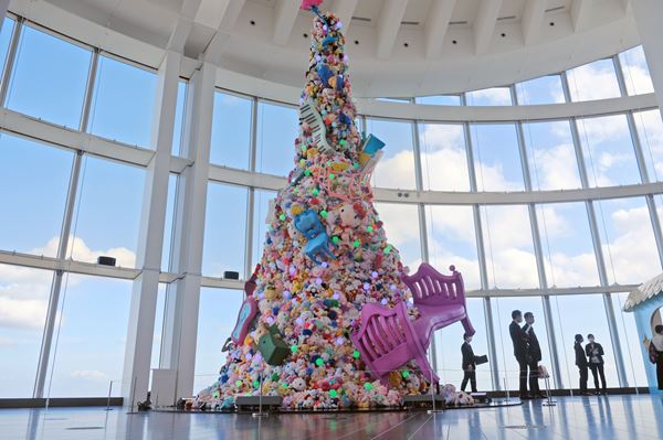 まず、エントランスで鑑賞者を迎えるのは、増田セバスチャンによる《Unforgettable Tower》。約6000体のぬいぐるみを使った高さ8mの作品は、この展覧会のために制作された“記憶の積み重なり”をイメージしたものだ。