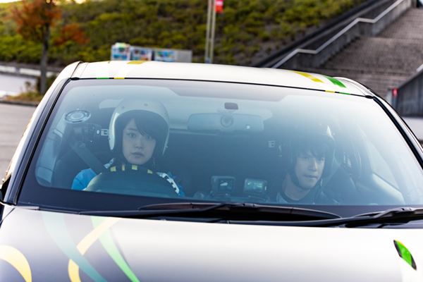 今回公開された場面写真では、トヨタが開発した競技専用車であるラリーカー、ヤリスを前に紅白のレーシングスーツ姿のふたりが記念写真撮影をする新鮮な姿や、真剣な眼差しでラリーカーに乗り練習に励むふたりの姿が確認できる。通常のカーレースとは違い、複雑なコースでの正確なドライブが必要とされるラリー。そのためにドライバーの隣で速度やコースの指示を出すコ・ドライバーが必要で、ドライバーとコ・ドライバーの信頼関係が非常に大切だという。劇中でも披露されている息のあったふたりのラリー中の掛け合いにも注目だ。