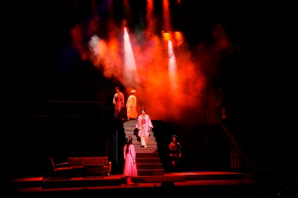 江戸川乱歩『お勢登場』の主人公である悪女お勢を、大正末期から昭和初期という時代背景はそのままに、また別の欲望渦巻く場所で活躍させたい、と思ったのが始まりだった。財産目当ての謀略を巡り、善悪が目まぐるしく入れ替わる物語。これは 2020年2月に作り、新型コロナウイルス感染拡大防止のために、開幕直前に全公演中止になってしまった芝居である。