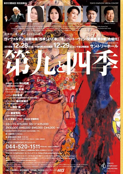 東京交響楽団の年末公演「第九と四季」は、今から42年前の1976年12月27日に東京文化会館でスタート(指揮=小林 研一郎)。ヴィヴァルディの《四季》から“春&冬(又は秋)”とベートーヴェンの《第九》という超人気曲2曲をカップリングしたプログラムが人気を呼び、年末の風物詩としてクラシックファンに愛されてきた。 ヴィヴァルディ《四季》のソリストにはこれまで、前橋汀子、千住真理子、漆原朝子(最多 4 回)、樫本大進、ザハー ル・ブロン、神尾真由子、大谷康子、ネマニャ・ラドゥロヴィッチ、服部百音等、日本を代表するヴ ァイオリニストから進気鋭の若手からまで、合計35名が出演。第九のソリストにも、日本及び世界の名歌手たちが数多く出演し年末を彩ってきたことも懐かしい思い出だ。