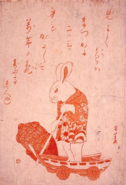 お正月特典として1月3日までの2日間、常設展示室観覧料無料、常設展示室の来場者先着500名に「初夢と宝船絵」(複製)の刷物がプレゼントされるという。そして1月4日~5日は、常設展示室の来場者先着500名にやまいよけのうさぎ 「疱瘡絵(赤絵)うさぎ」(複製)の刷物が。