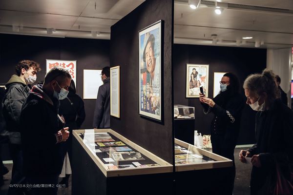 その他、パリ日本文化会館のエントランスホールにて、『男はつらいよ』オリジナルポスター8種、レプリカポスター全49作、書籍、雑誌、新聞記事、ロビーカードなどの展示も行われるなど、様々な視点から『男はつらいよ』の魅力が発信され、パリの人々が熱心に見入る姿も。