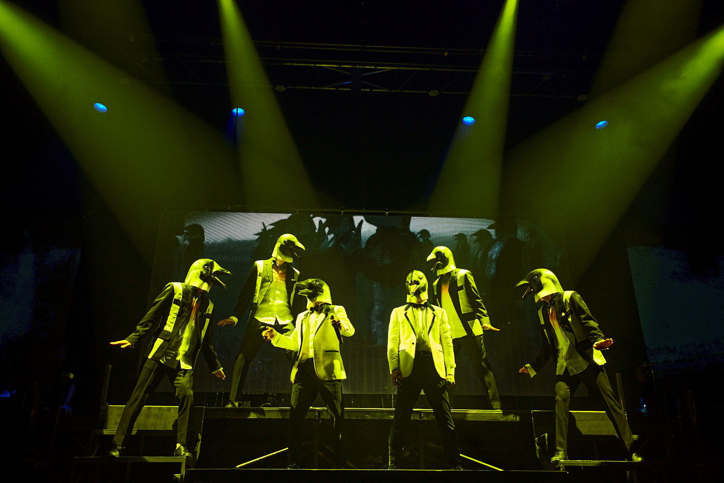 前半の「MATSURI」では女子6人組ガールズ・ブラス・グループのMOSが登場し、バンドにブラス、サックスが加わり豪華な演奏を披露。今ツアーのテーマソングともいえる人間の臓器をテーマにした楽曲「KARADANONAKADAKARADA」では、臓器の被り物をしたC&Kとダンサーのオールキャストで圧巻のダンスを披露した。
