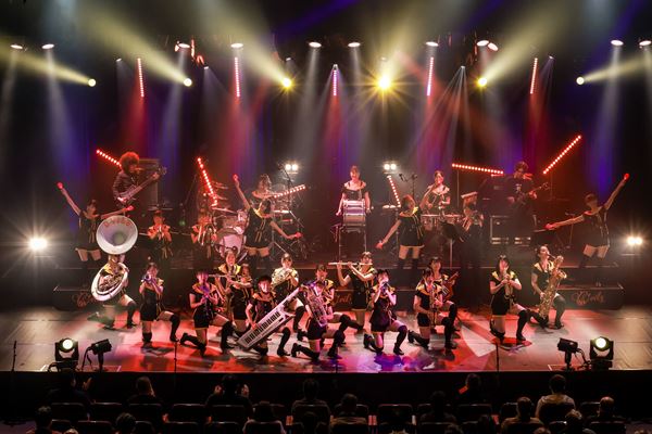 テナーサックスとボーカルを担当するにいなが声高らかに歌う2曲目の『Show Me How You Burlesque』以降も、楽曲によって、ダンスを前面に出したり、各楽器のソロをフィーチャーしたりと、見どころ満載で観客の目を釘付けに!