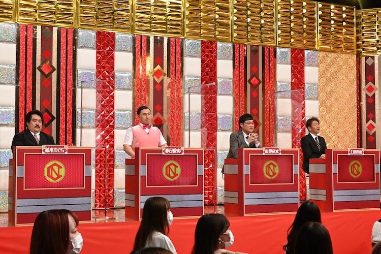 「くりぃむナンタラ」の「次の審査員は俺だ-1グランプリ」に出場する(左から)空気階段・鈴木もぐら、オードリー春日、南海キャンディーズ山里、くりぃむしちゅー上田。(c)テレビ朝日