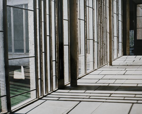 石塚はルーバーから差し込む光がシンフォニーを演奏していると捉え、ラトゥーレット修道院の回廊で年間を通して奏で続けられる演奏の揺らぎの中から、冬至と夏至の日の場景を選び出している。石塚が写真空間の再解釈で表現したのは音楽の立体化であり、それはまさに「音楽の建築」であるといえる。