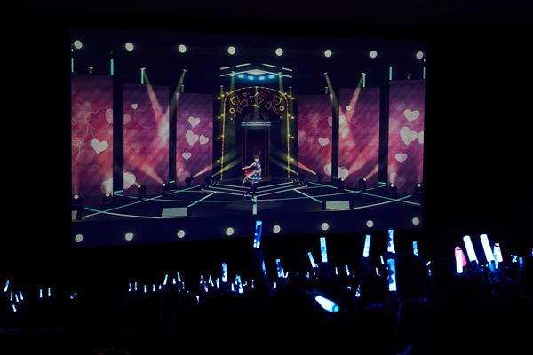 「この世界で」は今までの流れから打って変わってのバラード。ときのそらのハイトーンが曲と絶妙にマッチし、会場を静かな感動が包み込む。そして間髪入れずの「God knows...」では、先ほどまでとはまったく違う凛とした表情と声を見せてくれた。「花時の空(はなどきのそら)」では、ステージの装いと衣装が変化。スクリーンをバックにしたステージ上で私服姿で歌うときのそらの姿は、とても優しくなぜだか泣きたくなるような気持ちが湧き上がる。そしてその優しい空気のまま「赤いスイートピー」へステージは移り行く。ステージのバックには歌い上げるときのそらの顔が大きく映し出され、歌う彼女の心情が今まで以上に伝わってきた。