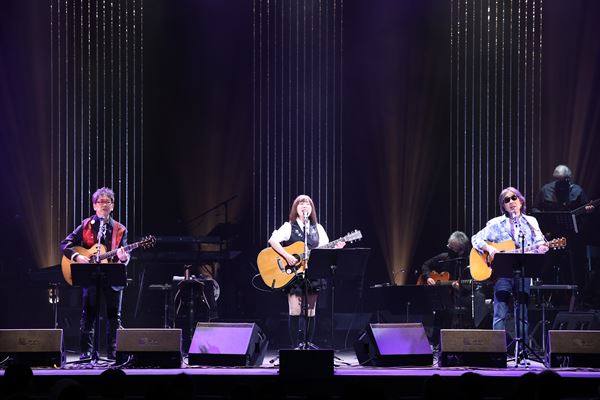 南はそのままステージに残り、伊勢を呼び込み「神田川」と「22才の別れ」を2人で歌唱。「神田川」は昨年逝去された喜多條忠氏が作詞した曲。「22才の別れ」は「風」のデビュー曲で、ともに活動していた大切な音楽仲間、大久保一久さんも昨年亡くなられている。2人への追悼の意を込めて歌われたこの2曲は、それぞれにとっても大切な楽曲で、歌い上げた後2人は「生きていると色々あるよね……」としみじみと語っていた。