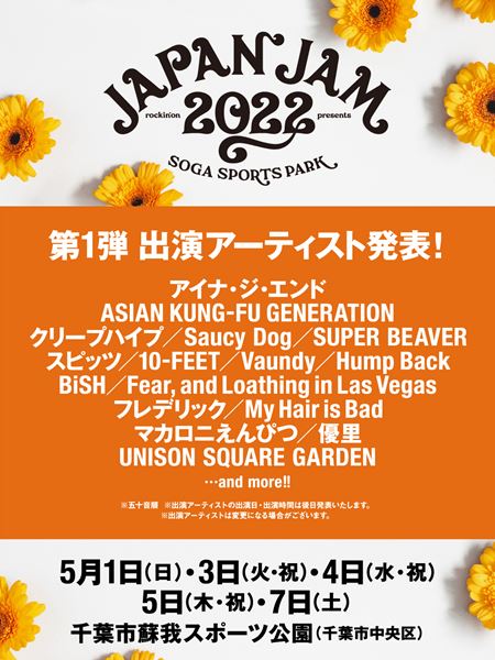 『JAPAN JAM 2022』第1弾出演アーティスト