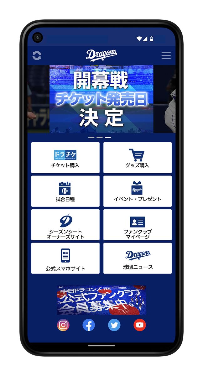 チケットサイトにもアクセス可能。中日ドラゴンズ公式アプリが登場
