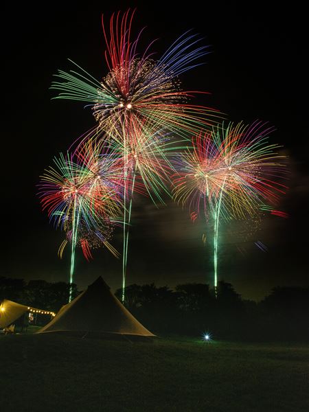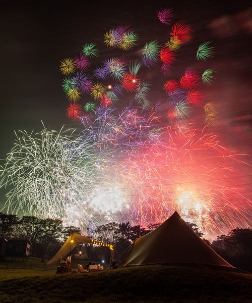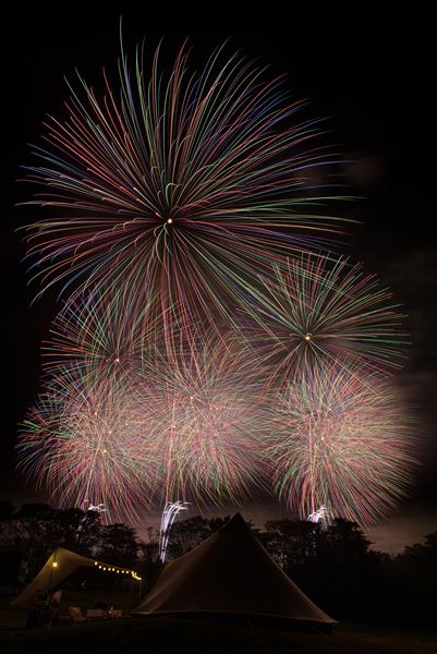 当日は紅屋青木煙火店、磯谷煙火店、齊木煙火本店、菊屋小幡花火店が参加。約10000発の打ちあげが予定されており、日没後の薄明るい時間からプログラムが始まって、少しずつ盛り上がっていき、クライマックスには先の4社が夢の協演を果たす。