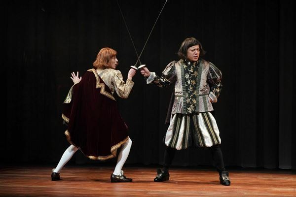 時は変わり、エリザベス朝の衣裳でフェンシングの動きを確認しているふたり。「剣先を上げろ」と何度も指導するロバートに対して、衣裳のカツラをマイペースに被り、すぐに稽古を切り上げようとするジョン。たったの20分間で両者の関係が変化し、ジョンからロバートへのリスペクト度合いにグラデーションが生まれたことを示唆させるフォトコールだった。