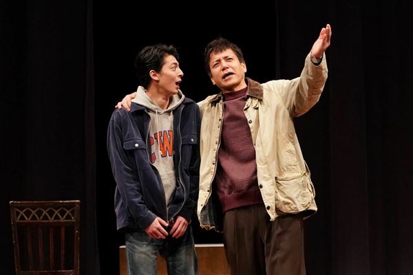 フォトコールで公開されたのは、冒頭からの約20分。劇団の先輩であるロバートを尊敬し、その話に熱心に耳を傾けながらも「食事をご馳走してもらえないか」と下心が透けて見える高杉ジョンの人物造形が何ともおかしい。ジョンの心酔ぶりに応えるよう、ドヤ顔で得意げにアドバイスする勝村ロバートも「こんな先輩や上司いたな」と既視感に見舞われるコミカルさを見せた。