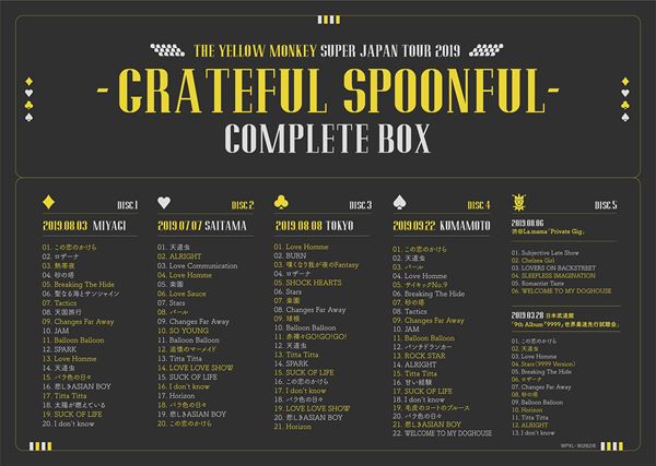 『THE YELLOW MONKEY SUPER JAPAN TOUR 2019 -GRATEFUL SPOONFUL- Complete Box』収録内容