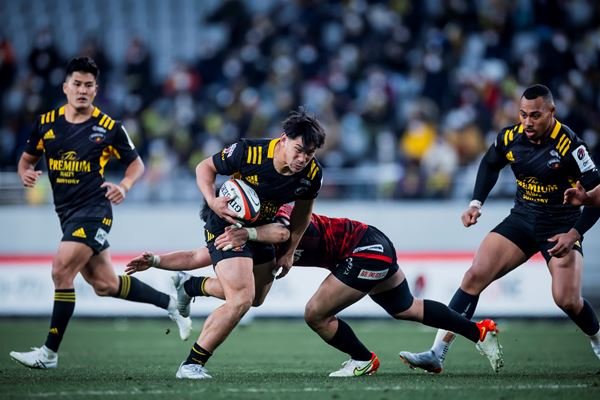 6分CTBテアウパ シオネが先制トライを決めると、17分WTB根塚洸雅のラインブレイクからサポートに走ったSH藤原忍がトライ。21分には残り10mでのラインアウトからモールと思いきや、PRオペティ・ヘルがショートサイドへ回り込んでそのままトライ。27分に静岡BRに一本返されるも、37分オーストラリア代表71キャップのSOバーナード・フォーリーがPGを成功。41分には今度はラインアウトからドライビングモール、最後は南アフリカ代表44キャップのHOマルコム・マークスが飛び込んで27-7で前半を終えた。