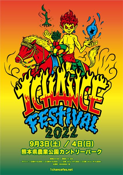 続きを読むWANIMA主催の音楽フェス『1CHANCE FESTIVAL 2022』が、9月3日・4日に地元・熊本の熊本県農業公園カントリーパーク(野外公演)で開催されることが決定した。