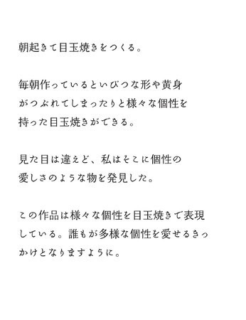 圓井は独学で写真をスタート。主にフィルムカメラを用いて写真を撮っており、デザイナーとしても活動する大学4年生だ。今年3月に自身のTwitterに“個性を愛する”をコンセプトとした卒業制作「目玉焼き」を投稿したところ、大きな話題となり、9万いいねを獲得した。