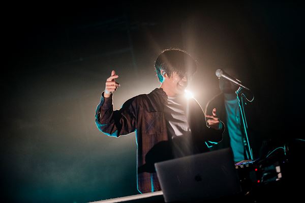 その曲のアウトロでサポートふたりが戻って3人になり、「シークレット・ゲストのお友達とやっていきたいと思います」という紹介で、ラッパーJJJが登場。「Prism」「Changes」の2曲をコラボで聴かせる。ラストは「最後、もう1曲だけひとりでやって、終わりたいと思います」と、tofubeatsのメインボーカルに、自らの声を生で重ねる「One」へ。曲の後半では、ハンドマイクでステージの前方へ出てくる熱演に、声を出せないオーディエンスは大きな拍手で応えた。