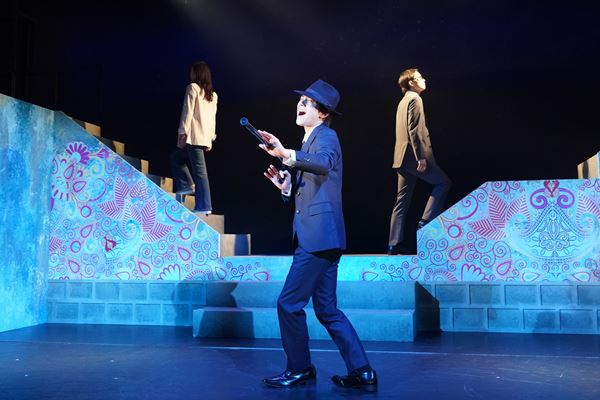 気の強い女性が気弱な青年を相棒に初恋相手を探す大騒動……というストーリーラインの中に、30歳をすぎ人生の転換期にきた男女が、自分の生き方と向き合っていくという共感性の高いテーマが描かれる、秀逸なミュージカルだ。これを耳馴染みの良い音楽と畳みかけるような笑いでノンストップで見せていく小劇場らしい作品なのだが、今回の浅草九劇バージョンは、まさにその“小劇場らしさ”をとことん味わえるのが魅力だ。大掛かりなセット転換もない中で場面がくるくる替わり次々と色々なキャラクターが登場、キャストがわずか3人だけとは思えない賑やかさ、楽しさ。マンパワーが生み出す熱気で心が浮き立ち、俳優の飛び散る汗までも見える距離でダイレクトにキャストの熱演が伝わってくる。