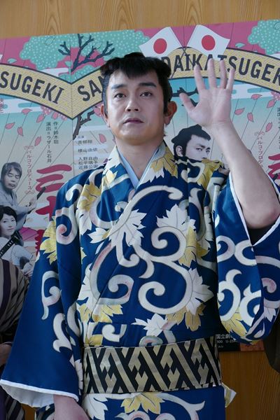 パルコ・プロデュース『三十郎大活劇』のゲネプロ及び取材会が4月1日、東京・新国立劇場で行われ、主演の青柳翔をはじめ、共演する横山由依と小倉久寛、演出を手掛けるラサール石井が取材に応じた。舞台衣装で登場した青柳は、初日を迎え「みんなと一緒に駆け抜けたい」と千秋楽を見据え、完走への決意を語った。