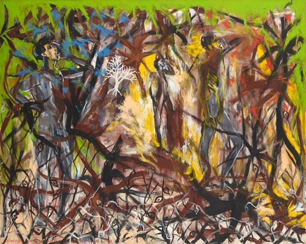 2015年に難聴の症状が彼を襲った。それと連動して、頭の中や腕のふるい方も思うようにならなくなり、老いも感じるようになった横尾だが、身体の自然な変化に従って筆をふるい、より曖昧な色や線の表現となっていく。「朦朧体」といえば、明治期に日本画で横山大観らが確立した画法だが、横尾の新シリーズで見られるスタイルを横尾は自ら「朦朧体」と呼び、新たな展開をもたらしている。