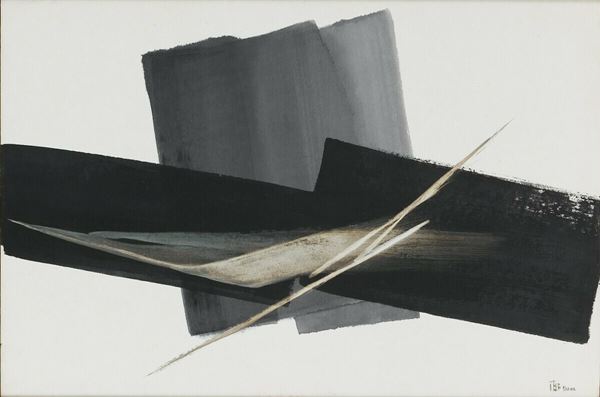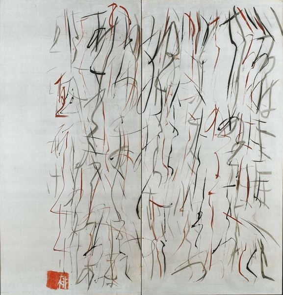 帰国後は書と絵画、文字と形象という二分法にとらわれない、墨によるまったく新しい独自の抽象表現、空間表現を確立。