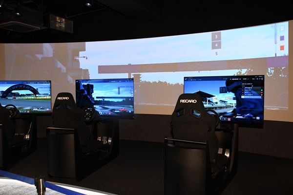 「RED° E-MOTOR」は、バーチャルのeモータースポーツと、リアルのモータースポーツという2つの世界観を楽しめる唯一無二の空間。人気のeモータースポーツのゲームタイトルを楽しんだり、最先端のマシーンに乗ってレーシングシミュレーターを楽しんだり……と、モータースポーツファンにはたまらないスペースだ。