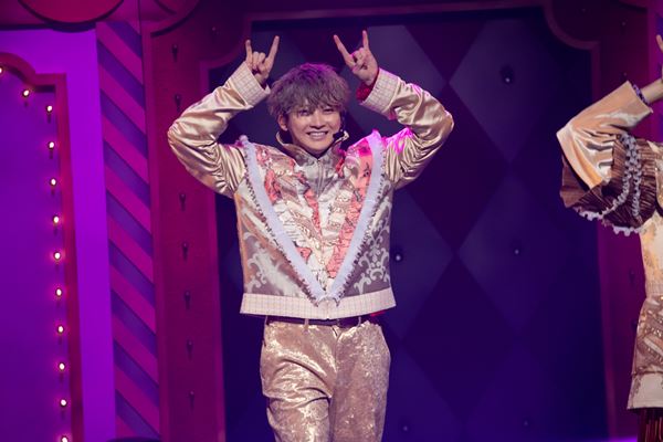 リョーガが「楽しんでいますか?」と客席に呼びかけると大きな拍手が。「それもそのはず、まず見て楽しい!」とセットについて触れるリョーガ。そこにカイが「セットの秘密を教えましょう」とにっこり。実は「ちょっとずつうさぎちゃんがいるんですよ。全部で11羽います」。11羽めを見つけるのはものすごく難しい、とのこと。ところどころうさぎがモニターに抜かれていたが、途中、タカシの後ろ姿がズームアップされ、それに気付いてうさぎポーズをしたのはさすが。