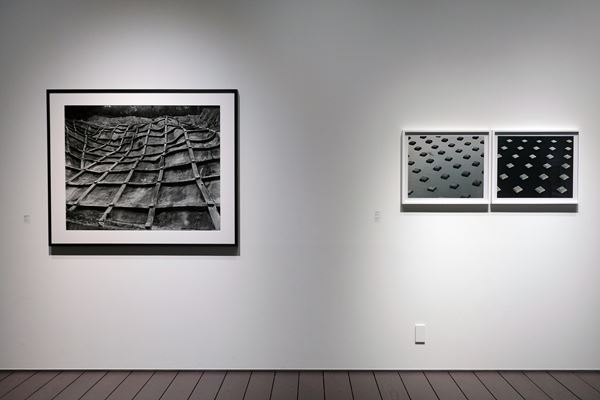 柴田敏雄は、日本各地のダムやコンクリート擁壁、橋などの人工的構造物と自然との関わりを独自の視点で見つめる写真家。対象を大胆に切り取り、時には抽象的にも見える写真作品は、風景を抽象化して描いたモンドリアンの作品と不思議な調和を見せている。