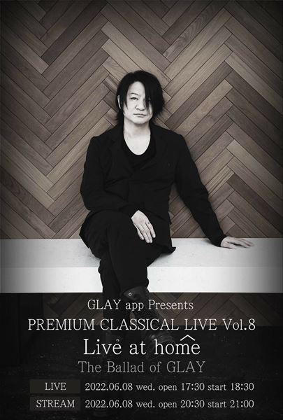 『Live at Home』は、2020年の新型コロナウイルス感染拡大の中にスタートしたライブシリーズ。今回のタイトルは『GLAY app Presents PREMIUM CLASSICAL LIVE LIVE at HOME Vol.8 The Ballad of GLAY』で、TERUの誕生日にあたる6月8日に東京・スモールワールズTOKYOで有観客とディレイ配信で行われる。