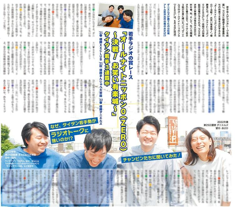 「オールナイトニッポン0(ZERO)」(ニッポン放送)の単発パーソナリティ権を懸けた「決戦!お笑い有楽城」でXXCLUB、まんじゅう大帝国、ダニエルズが優勝し、タイタンが同大会を3連覇中。明日6月4日(土)深夜に生放送を控えているダニエルズと、前回優勝者のまんじゅう大帝国が、今大会を振り返りながらタイタン勢のラジオトークがなぜ強いのかを語る。