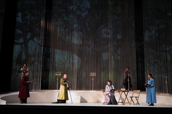 舞台上に設えられた白いストリングカーテンには場面ごとに映像が映し出され、植物を演じる時のキャストの動き、音(またはハミング、歌)など、観客の想像力を掻き立てる演出は従来の朗読劇とはスケールも趣も異なる。まさに五感が刺激される朗読劇をぜひ劇場で体感してほしい。公演は6月12日(日)まで。