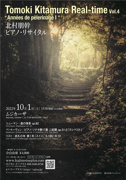 新進気鋭のピアニスト北村朋幹による「北村朋幹ピアノ・リサイタル Tomoki Kitamura Real-time Vol.4 “Années de pèlerinage I ”」の開催が発表された(2022年10月1日:ムジカーザ)。