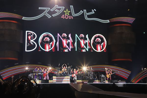根本が語る。「僕らは、スタ☆レビ好きのみんなとできるだけ一緒にいたかった。いつもは3時間で、あっという間。みんなが楽しんでくれてる顔を見て、僕らも楽しくなって歌ってると終わっちゃうんだよ。40周年だし、もうちょっと一緒にいようよ、じゃあ60曲歌ってみようかって」。そして絞り出すように「やってみて、本当に幸せなバンドだなと。こんな言葉で申し訳ないけど……ありがとう」。最後の58曲目は「悲しい詞だけど、笑顔で聴いててくれたらうれしいです」と、「今夜だけきっと」。背後には、過去の同曲のライブをつなぎ合わせた映像が映し出され、会場はさまざまな思いと、それでいて幸福な感情で満ち溢れた。