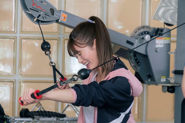 場⾯写真には、⼀⼼にトレーニングをこなす蛯原に対して、必死な表情で蛯原に付いて⾏こうとしている萌⾐がうつしだされている。⽣⾒は撮影の翌⽇に⾃分だけ筋⾁痛になったと明かし、また岩本は、マシンの使い⽅や筋トレ⽅法をスタッフや⽣⾒にレクチャーするなど⽇頃の鍛錬が伺えるエピソードも。