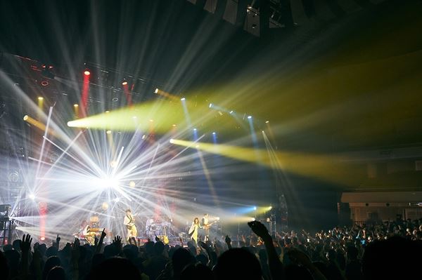 舞台後方の巨大な扉のセットが左右に開き、小林壱誓(Guitar)、peppe(Keyboard)、穴見真吾(Bass )、サポートドラマー=比田井修が登場してスタンバイしたところへ、長屋晴子(Vocal & Guitar)が高らかな歌声を響かせながらステージ前面に進み出ると、一階席から三階席まで一面に歓喜の拍手が広がっていく。