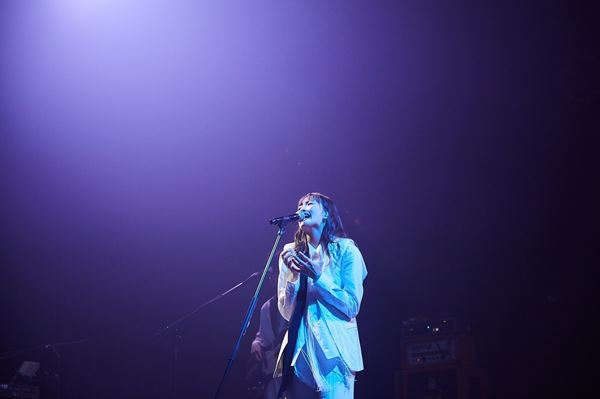 「お待たせした分、最高の一日にしたいと思います!」という言葉の通り、「リトルシンガー」「あのころ見た光」「ずっとずっとずっと」と躍動感あふれる楽曲を次々に披露し、割れんばかりのクラップを呼び起こしていく。コロナ禍の影響ゆえ、会場には歓声も合唱も湧き起こることはなかったが、「あのころ見た光」のコーラスパートで「心の中で一緒に歌ってくれると嬉しいです!」という長屋の呼びかけに応えて、観客の手がその想いとともに高々と突き上がり、ステージと客席の一体感を克明に伝えていた。