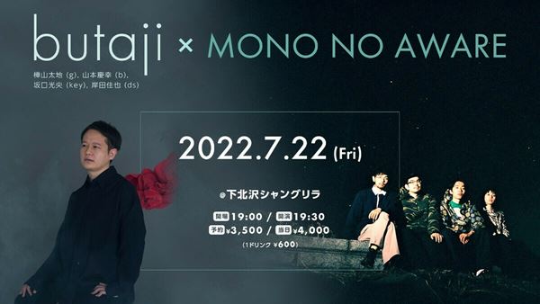 出演:butaji w/ 樺山太地 (Gt), 山本慶幸 (Ba), 坂口光央 (Key), 岸田佳也 (Ds) / MONO NO AWARE