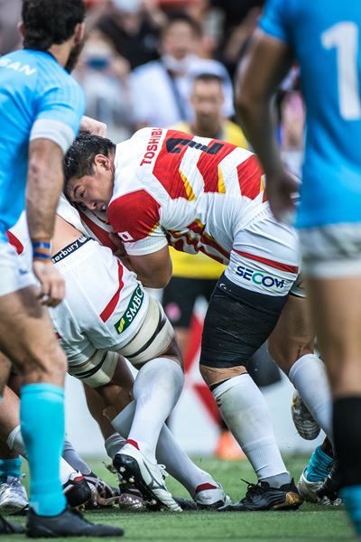 キックオフとともにWTBシオサイア・フィフィタがあいさつ代わりの強烈タックル。FB野口竜司も自ら蹴ったハイパントに競ってマイボールを確保し、主導権を握る。1週間前、ナショナル・デベロップメント・スコッド(NDS)で構成した日本代表は序盤ウルグアイに手こずったが、4分敵陣深くのラインアウトからモールを押し込み、HO坂手淳史主将が早々にトライ。その後、ウルグアイがペナルティをおかせば、SO山沢拓也のPGで次々加点していった。